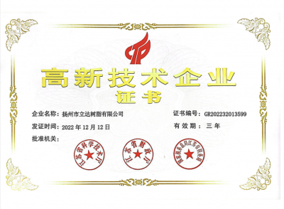 扬州市立达树脂有限公司(江苏立润达新材料科技有限公司)建于1993年,座落在风景秀丽人杰地灵的历史文化名城扬州北郊省级高新区内,属国家高新技术企业。